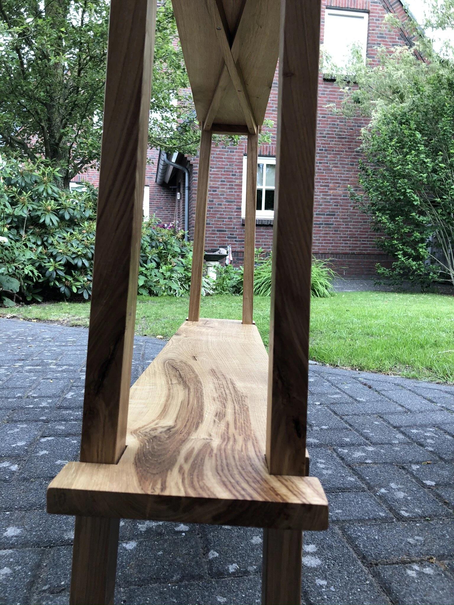 Deze side tables zijn gemaakt van oud eiken. Met drie niveau’s worden deze prachtige meubels momenteel gebruikt als ideale nachtkasten. De tafels werden precies gemaakt op de wens van de klant. Het kruis onder de planken maakt dit meubilair uniek.